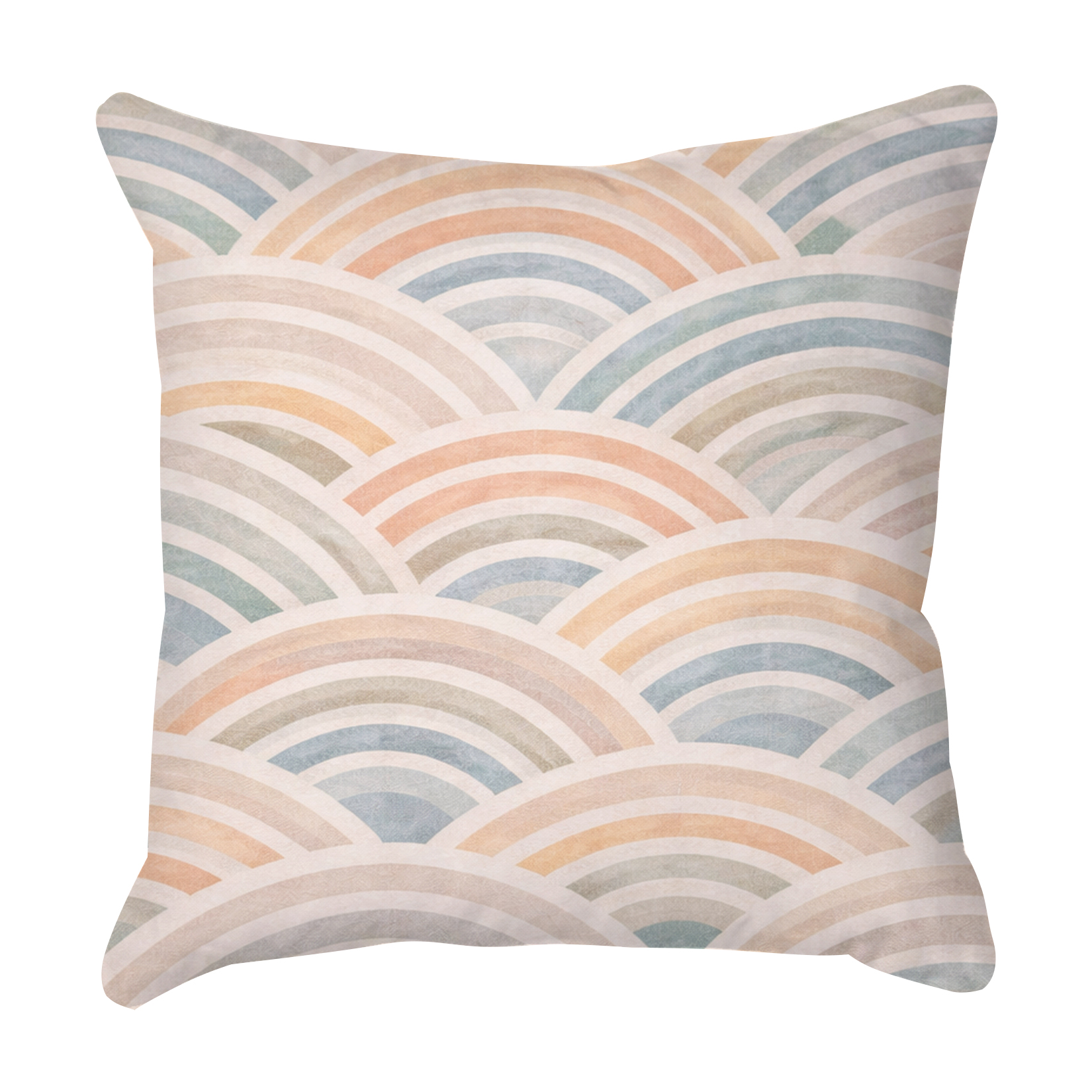 Inspired by sun-drenched coastlines and soft pastel skies, the Coastal Rainbow cushion brings a fresh, serene vibe to your outdoor living space. Featuring a gentle wave-like arc pattern in muted tones of coral, seafoam, sand, and sky blue, this design evokes the soothing rhythm of ocean tides and sea breezes.