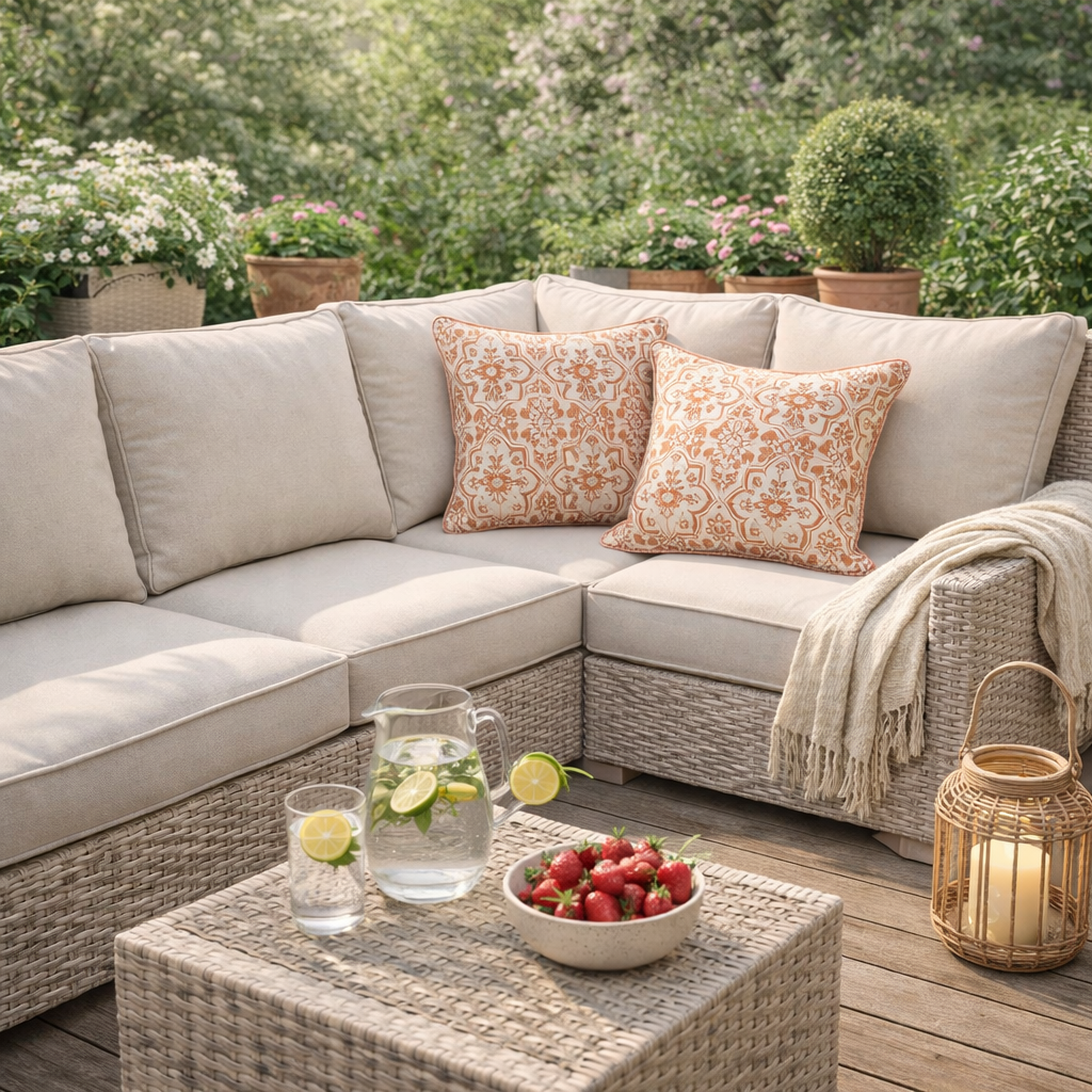 Create a welcoming outdoor space to relax and unwind with our range of Laura Ashley weather resistant scatter cushions.
